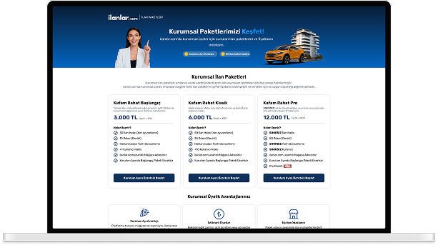 Kurulum ayını ücretsiz kullandıktan sonra, ihtiyacına göre hazırlanan paketlerle ilan vermeye devam edebilirsin. Paketini seçer, dilediğinde değiştirebilirsin.